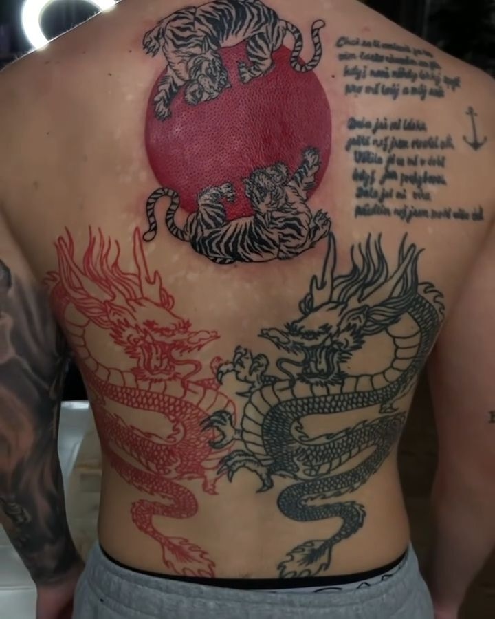 Tetování mýtické bytosti a zvířata, drak a tygr, rukáv
