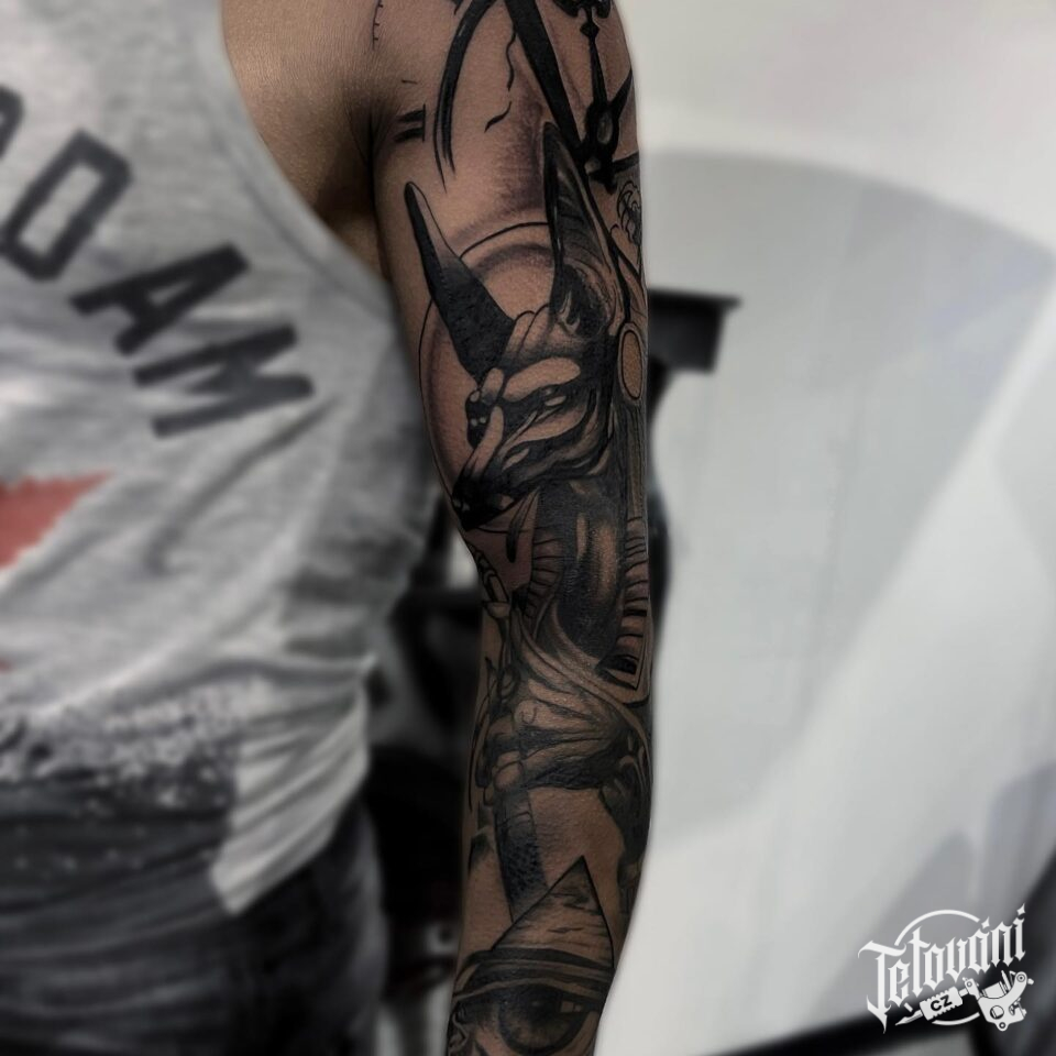 Tetování mýtické bytosti, Anubis na ruce
