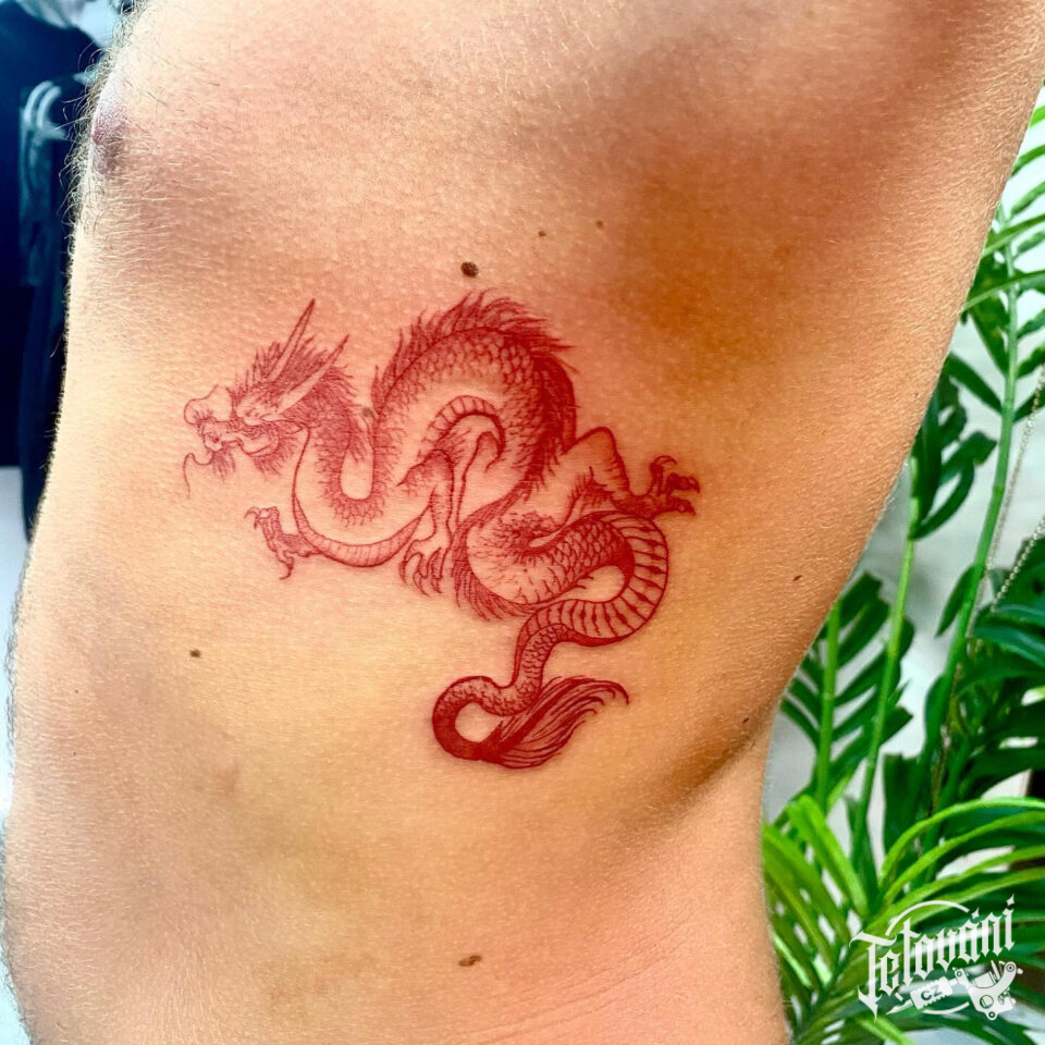 Tetování mýtické bytosti, čínský drak na žebrech