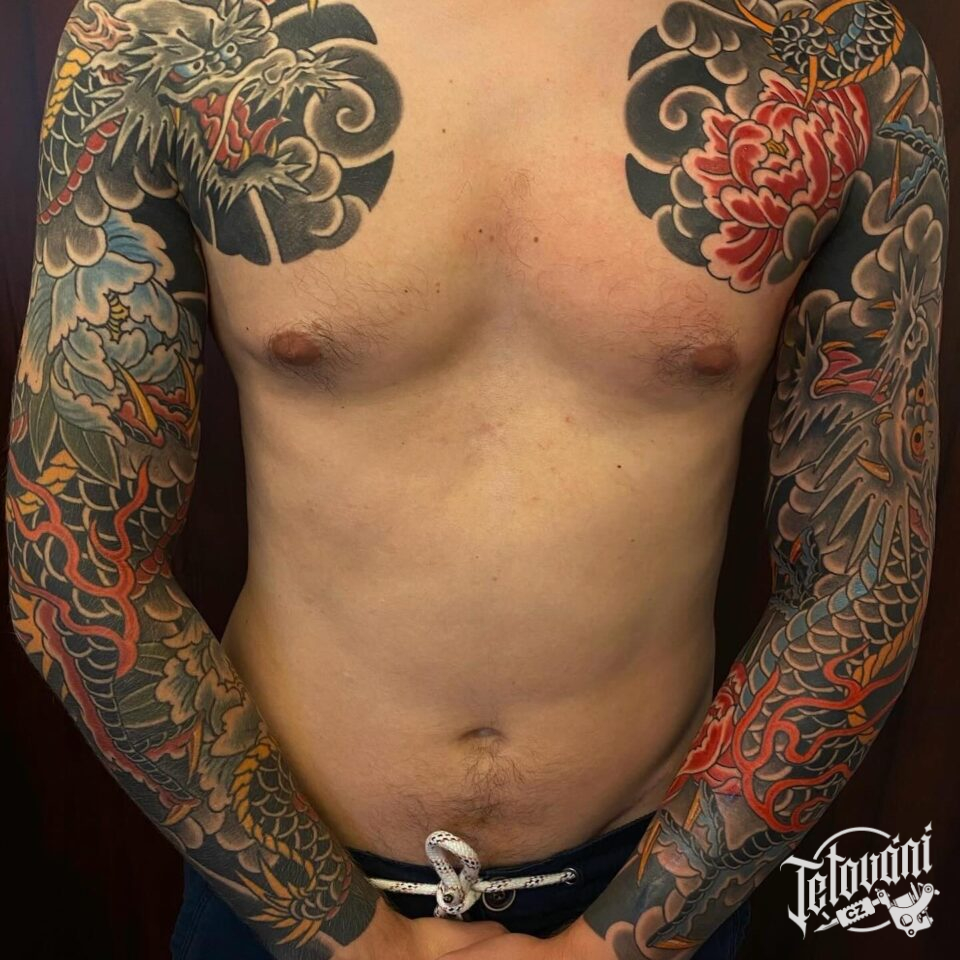 Tetování mýtické bytosti, draci, rukáv