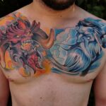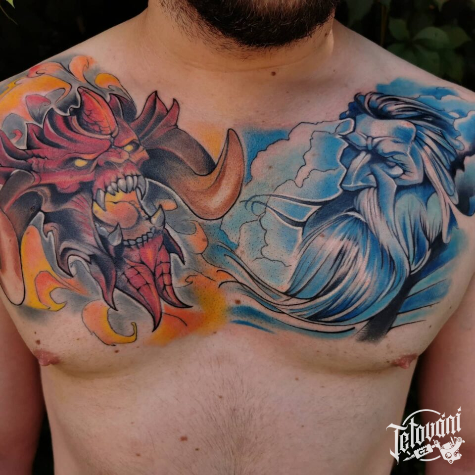 Tetování mýtické bytosti drak a bůh na prsa