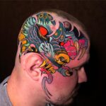 Tetování mýtické bytosti, drak na hlavě