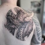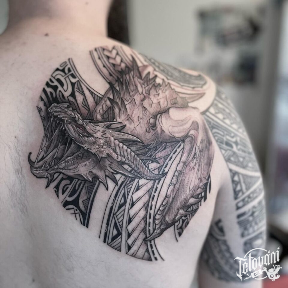 Tetování mýtické bytosti, drak na lopatce