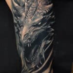 Tetování mýtické bytosti, drak na paži