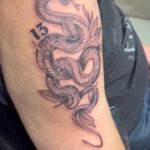 Tetování mýtické bytosti, drak na paži