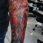 Tetování mýtické bytosti, drak na předloktí
