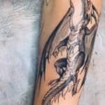 Tetování mýtické bytosti, drak na předloktí