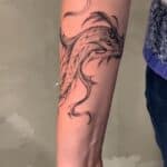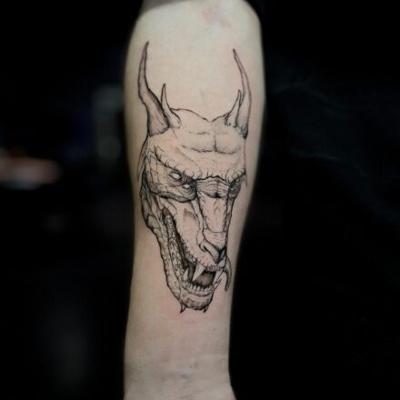 Tetování mýtické bytosti, drak na předloktí