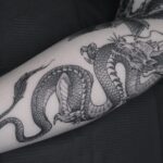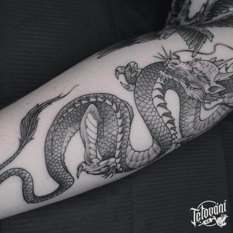 Tetování mýtické bytosti, drak na předloktí