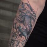 Tetování mýtické bytosti, drak na předloktí