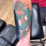 Tetování mýtické bytosti, drak na předloktí