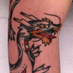 Tetování mýtické bytosti, drak na předloktí