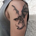 Tetování mýtické bytosti, drak na rameni