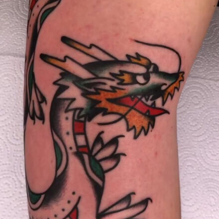 Tetování mýtické bytosti, drak na ruce