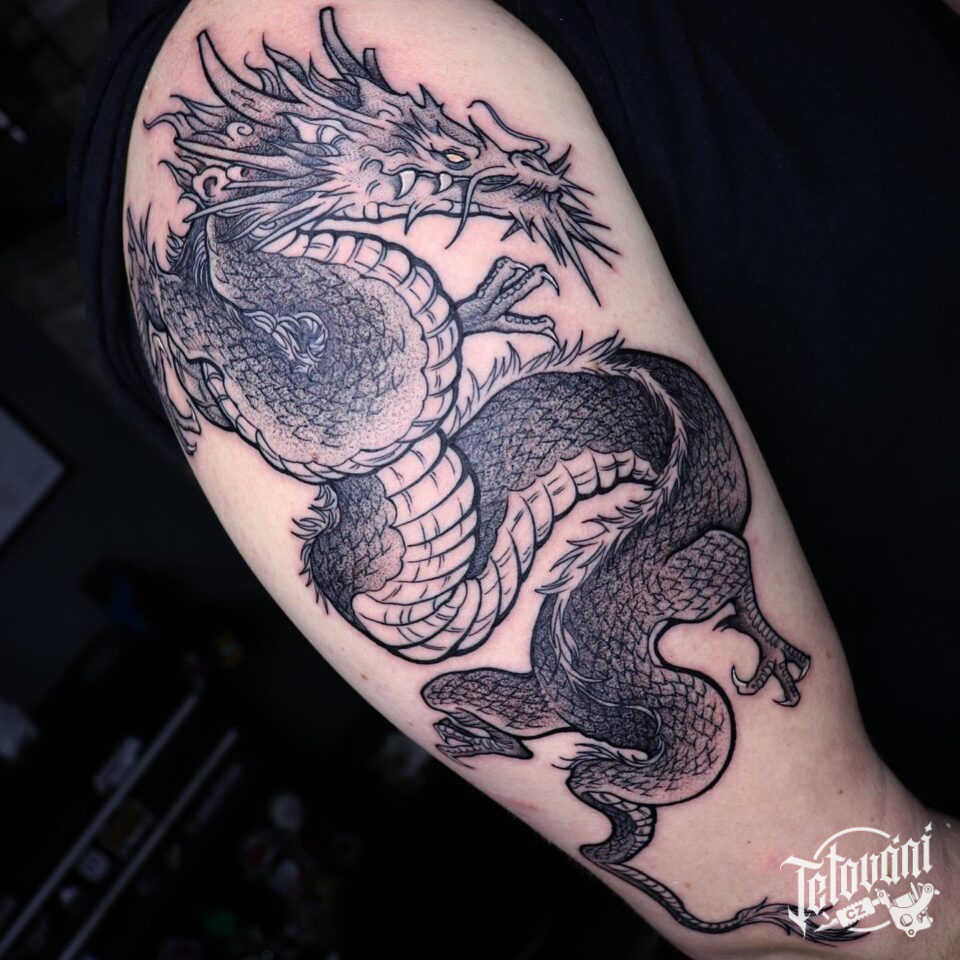 Tetování mýtické bytosti, drak na ruce