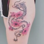 Tetování mýtické bytosti, drak na stehně