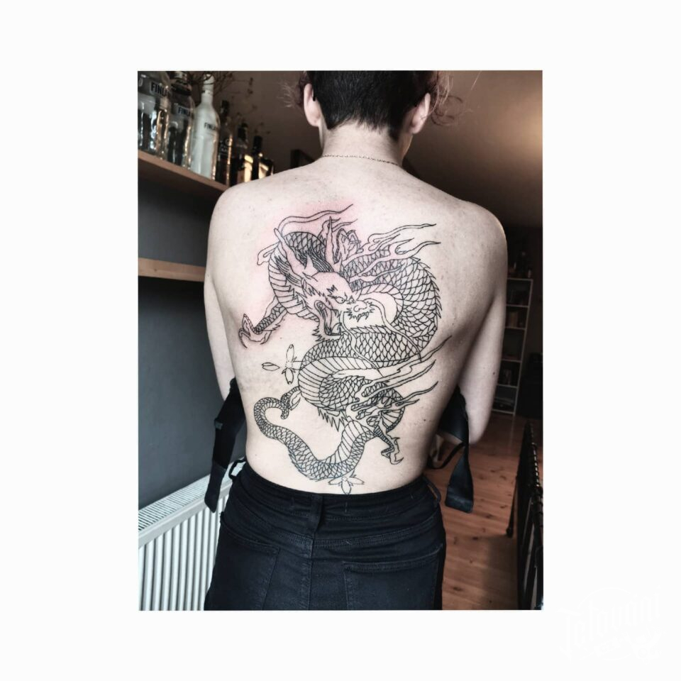 Tetování mýtické bytosti, drak na zádech