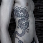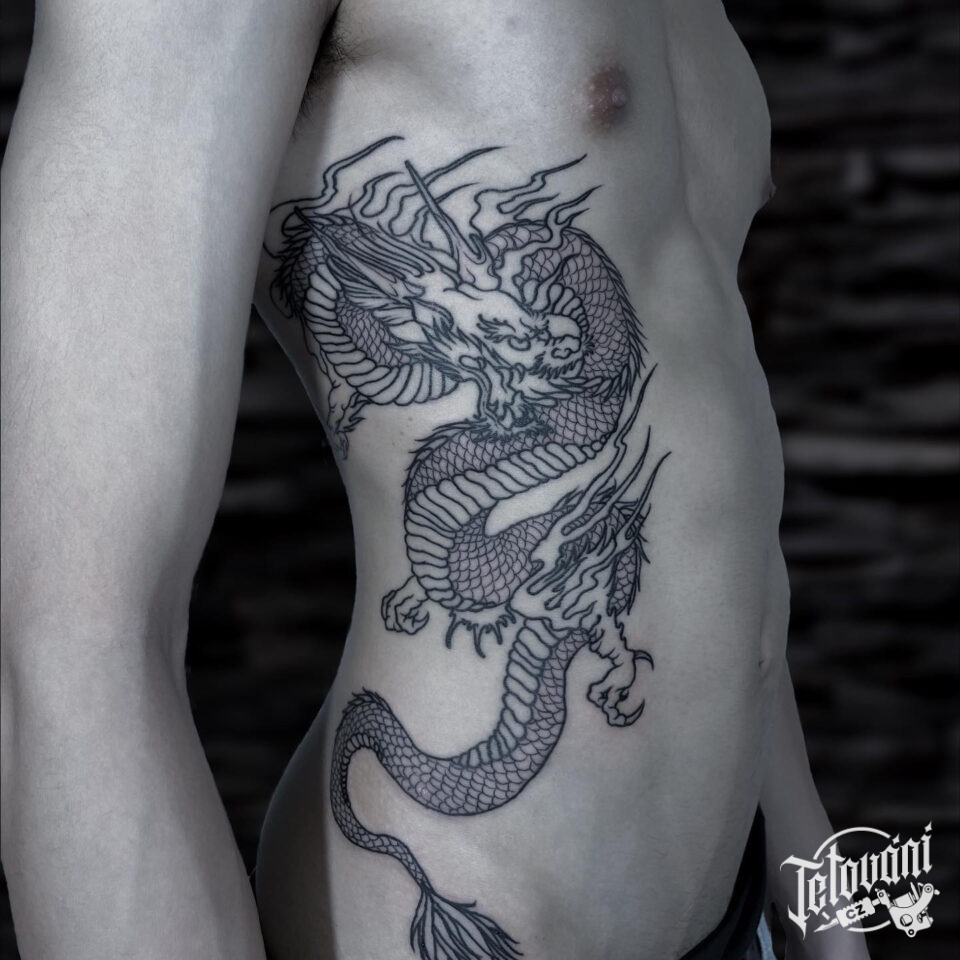 Tetování mýtické bytosti, drak na žebra