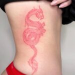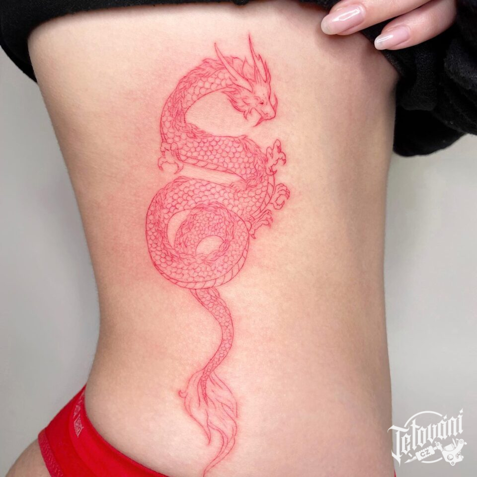Tetování mýtické bytosti, drak na žebrech