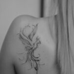 Tetování mýtické bytosti, fénix na lopatku