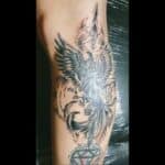 Tetování mýtické bytosti, fénix na lýtku