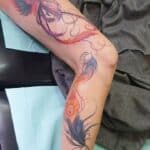 Tetování mýtické bytosti, fénix na noze