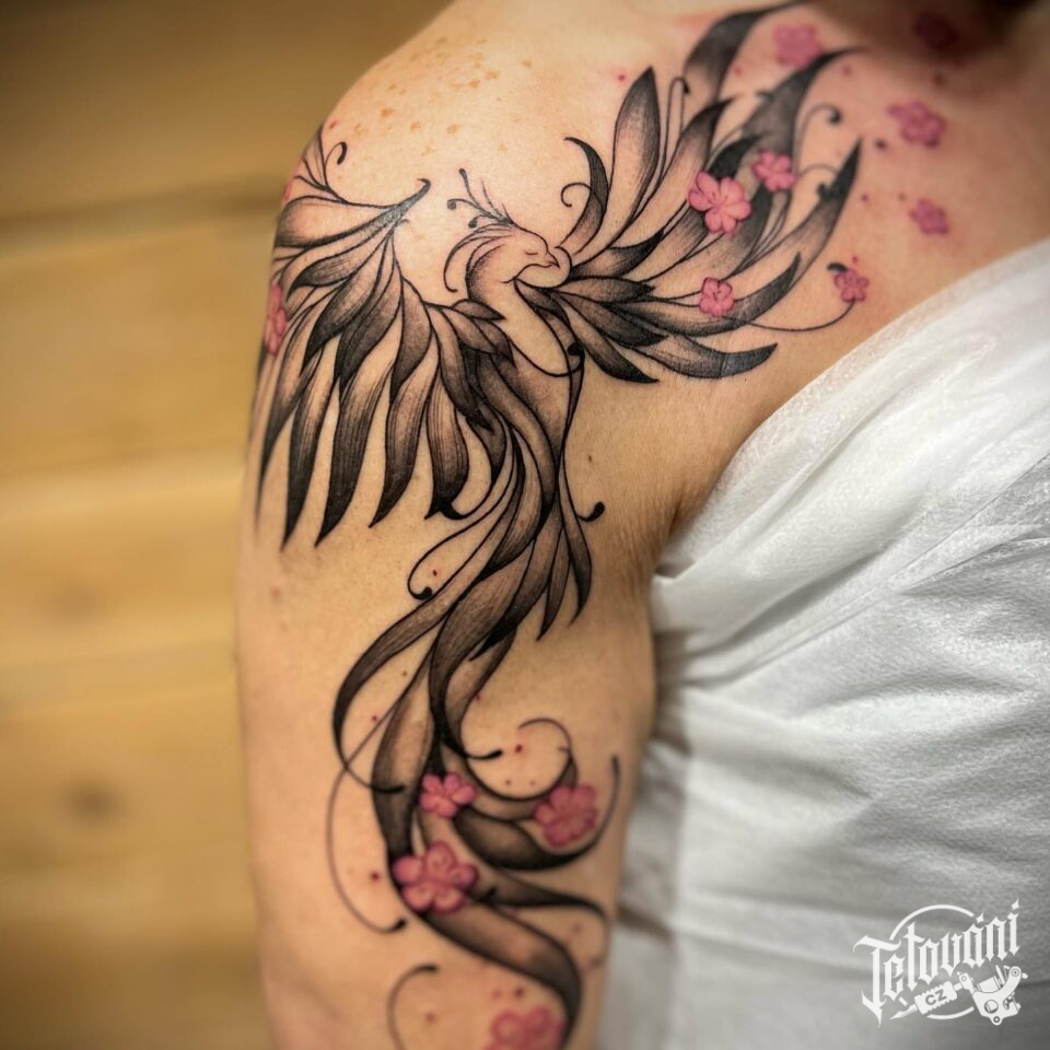 Tetování mýtické bytosti, Fénix na rameni