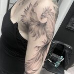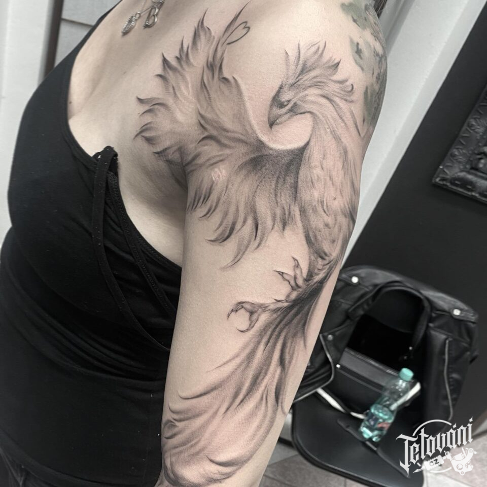 Tetování mýtické bytosti, fénix na rukávu