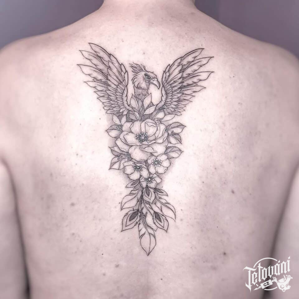 Tetování mýtické bytosti, Fénix na zádech