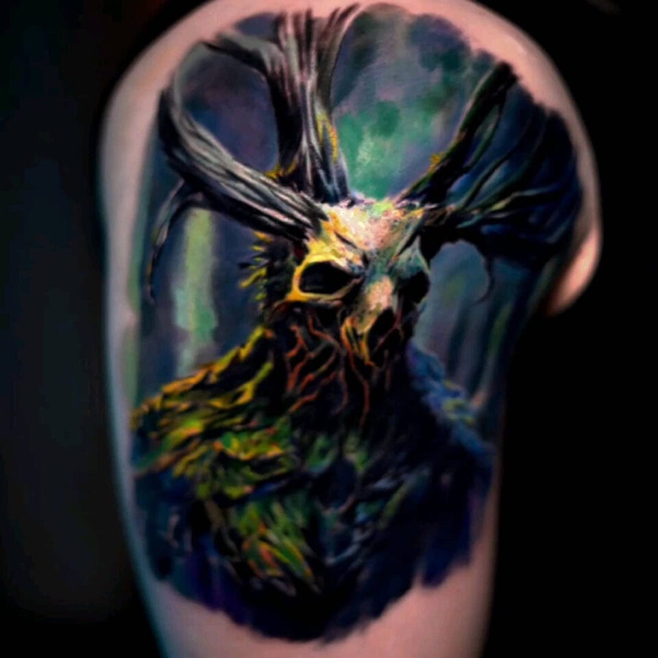 Tetování mýtické bytosti lešij na ruce