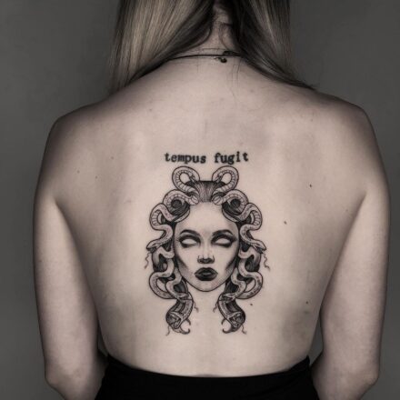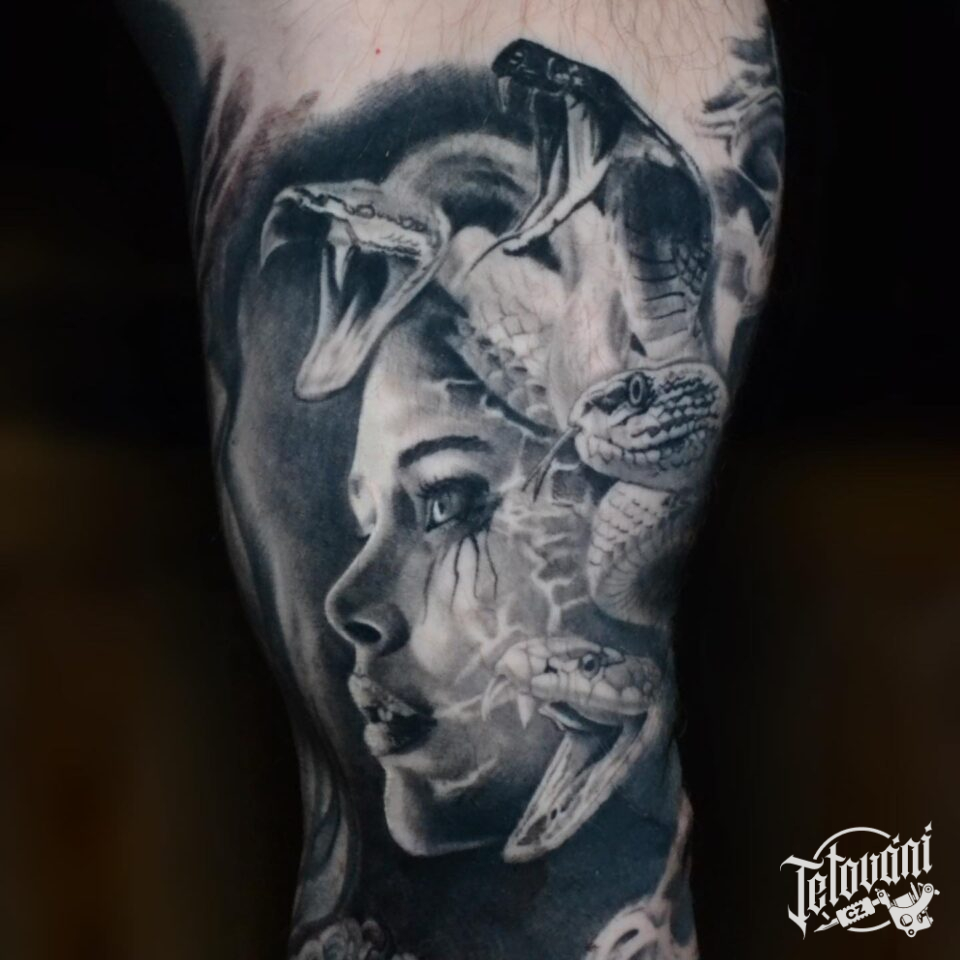 Tetování mýtické bytosti, medúza na paži