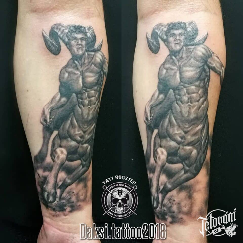Tetování mýtické bytosti, Minotaurus na předloktí