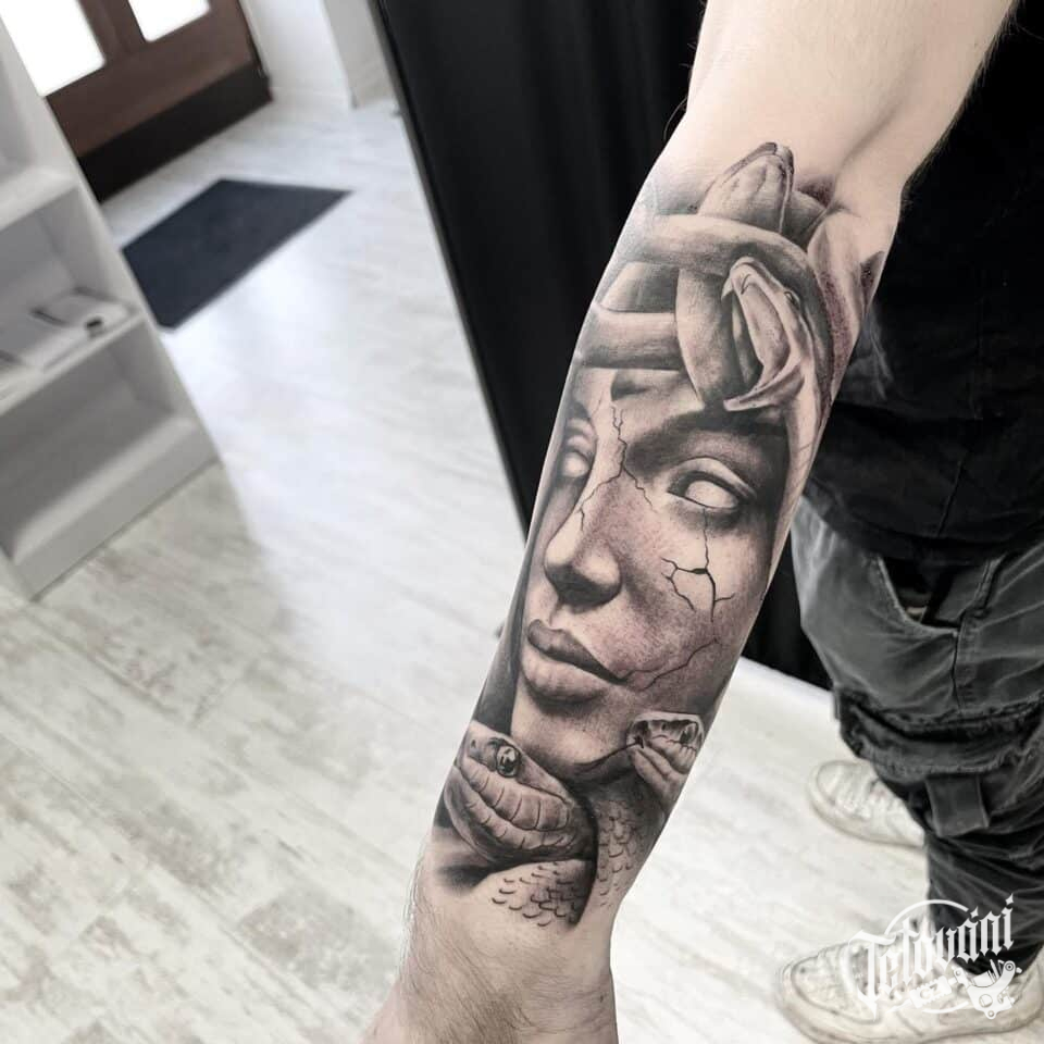 Tetování mýtické bytosti, mýtická medúza a zvířata, hadi na předloktí