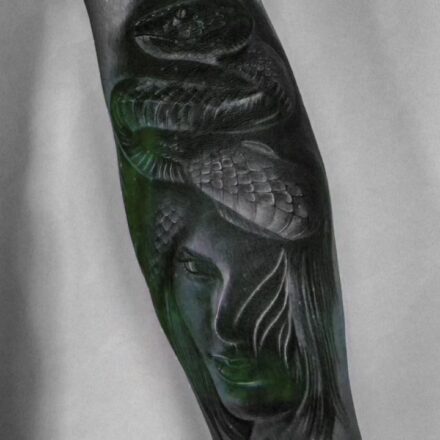 Tetování mýtické bytosti, mýtická medúza na hřbetu ruky