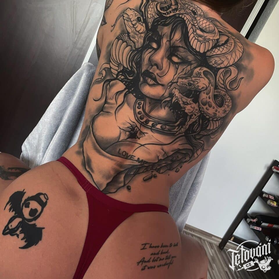 Tetování mýtické bytosti, mýtická medúza na zádech