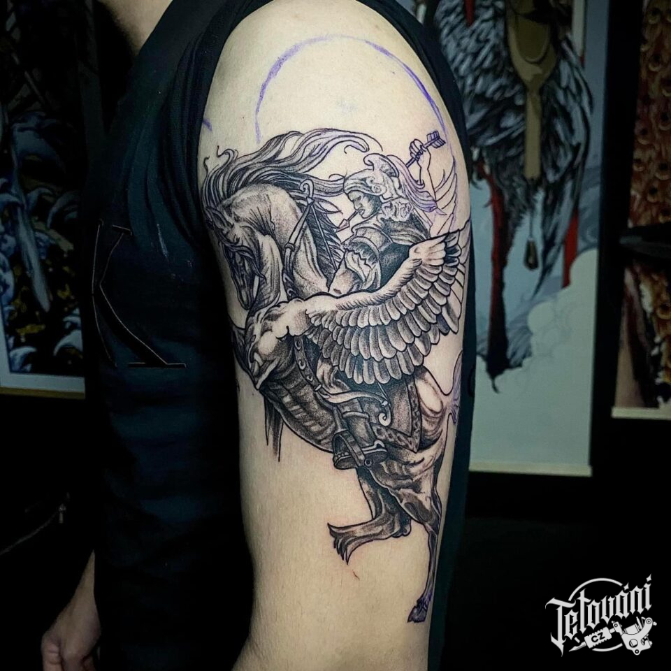 Tetování mýtické bytosti, Pegas na paži
