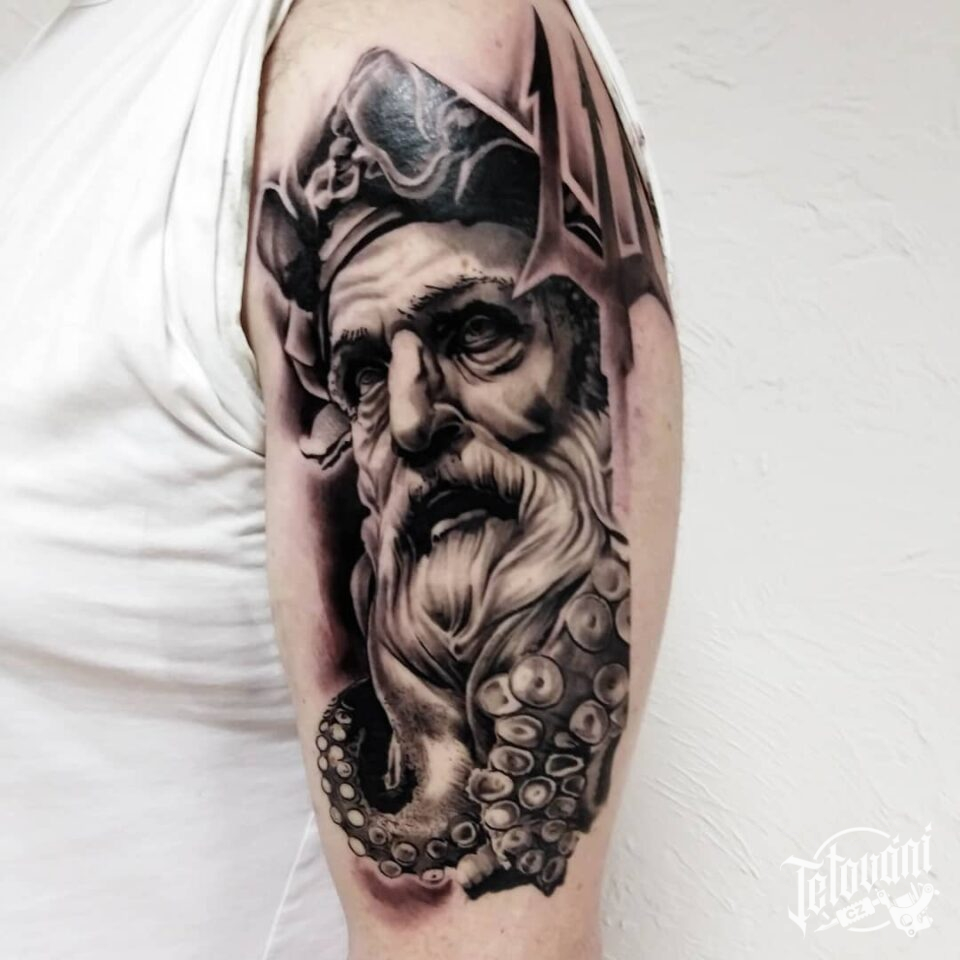 Tetování mýtické bytosti, Poseidon na rameni