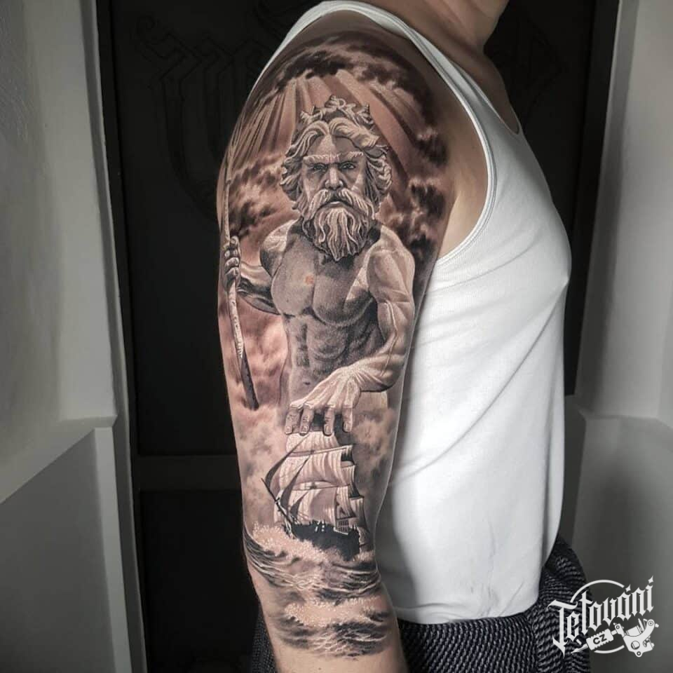 Tetování mýtické bytosti, Poseidon na rameni