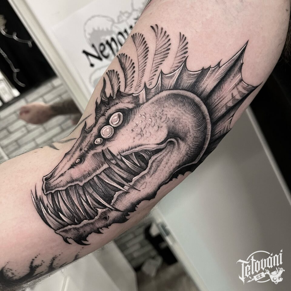 Tetování mýtické bytosti, příšera na ruce