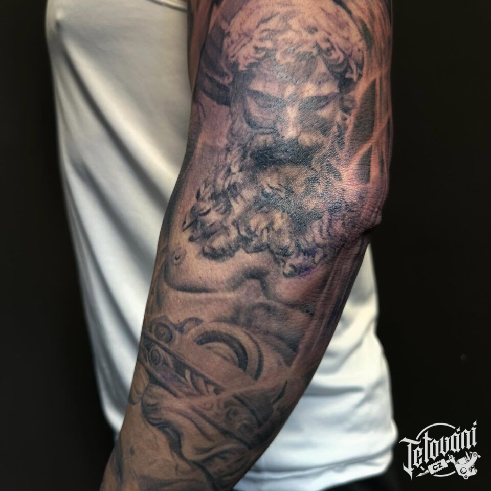 Tetování mýtické bytosti, rukáv
