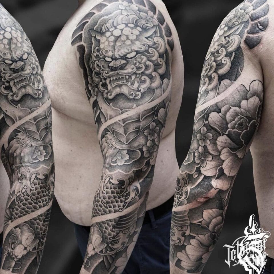 Tetování mýtické bytosti, ryba, rukáv