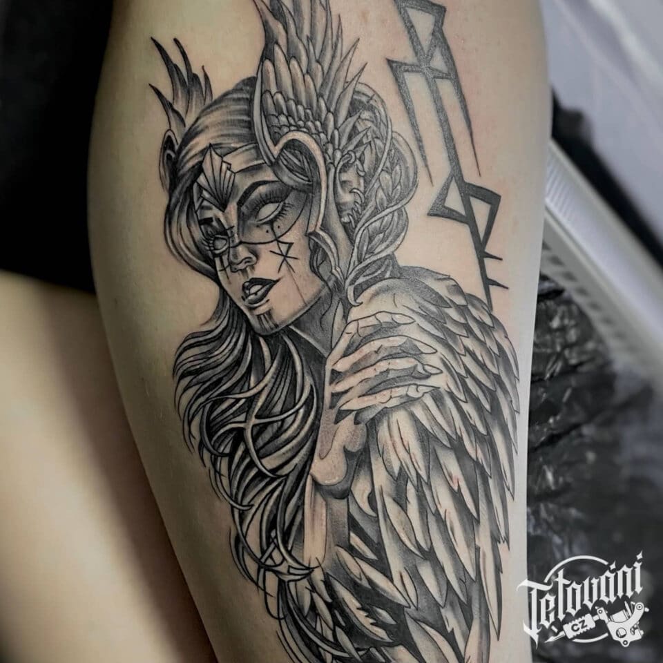 Tetování mýtické bytosti, Valkýra na stehně