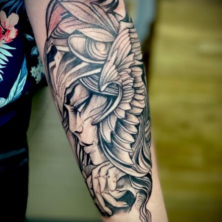 Tetování mýtické bytosti, Valkýra s lebkou na rameni