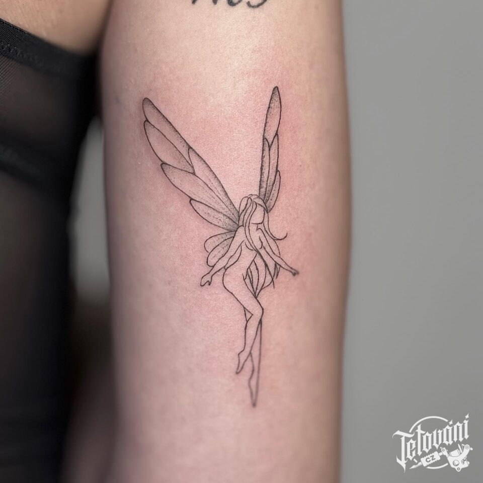 Tetování mýtické bytosti, víla na paži