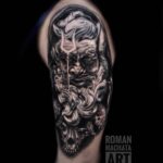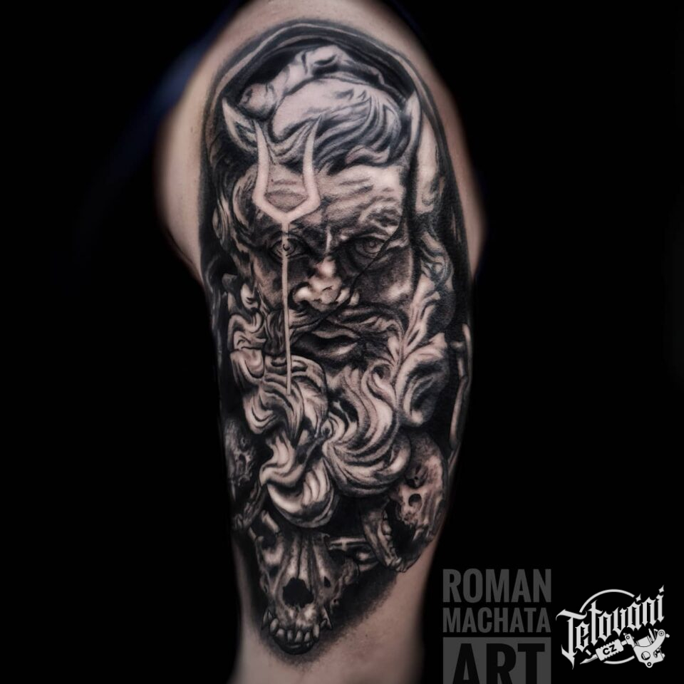 Tetování mýtické bytosti, Zeus a lebka na rameno