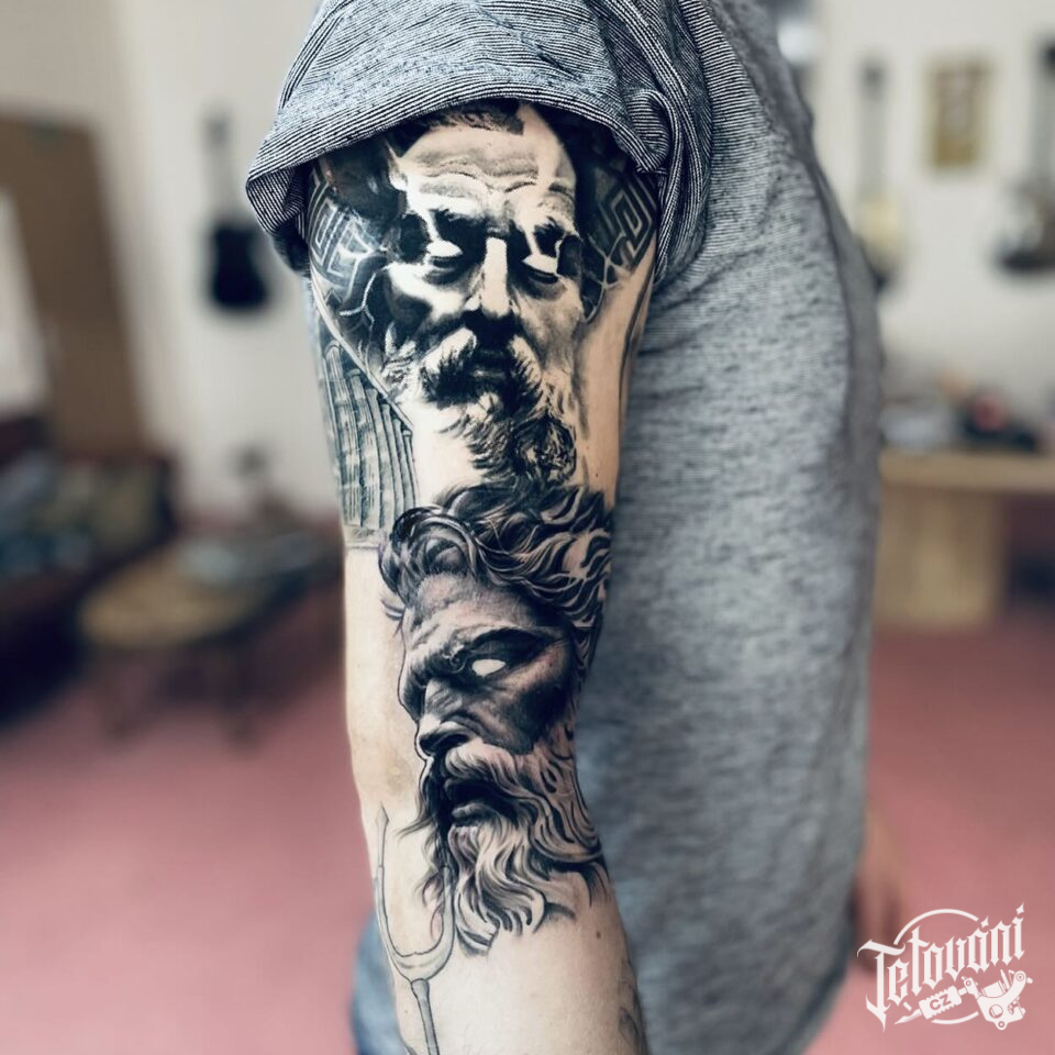 Tetování mýtické bytosti, Zeus a Poseidon na ruce
