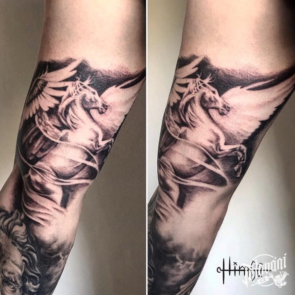 Tetování mýtické bytosti, zvířata, kůň s křídly, Pegas na paži