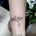 Tetování mýtických bytostí drak a čísla na předloktí
