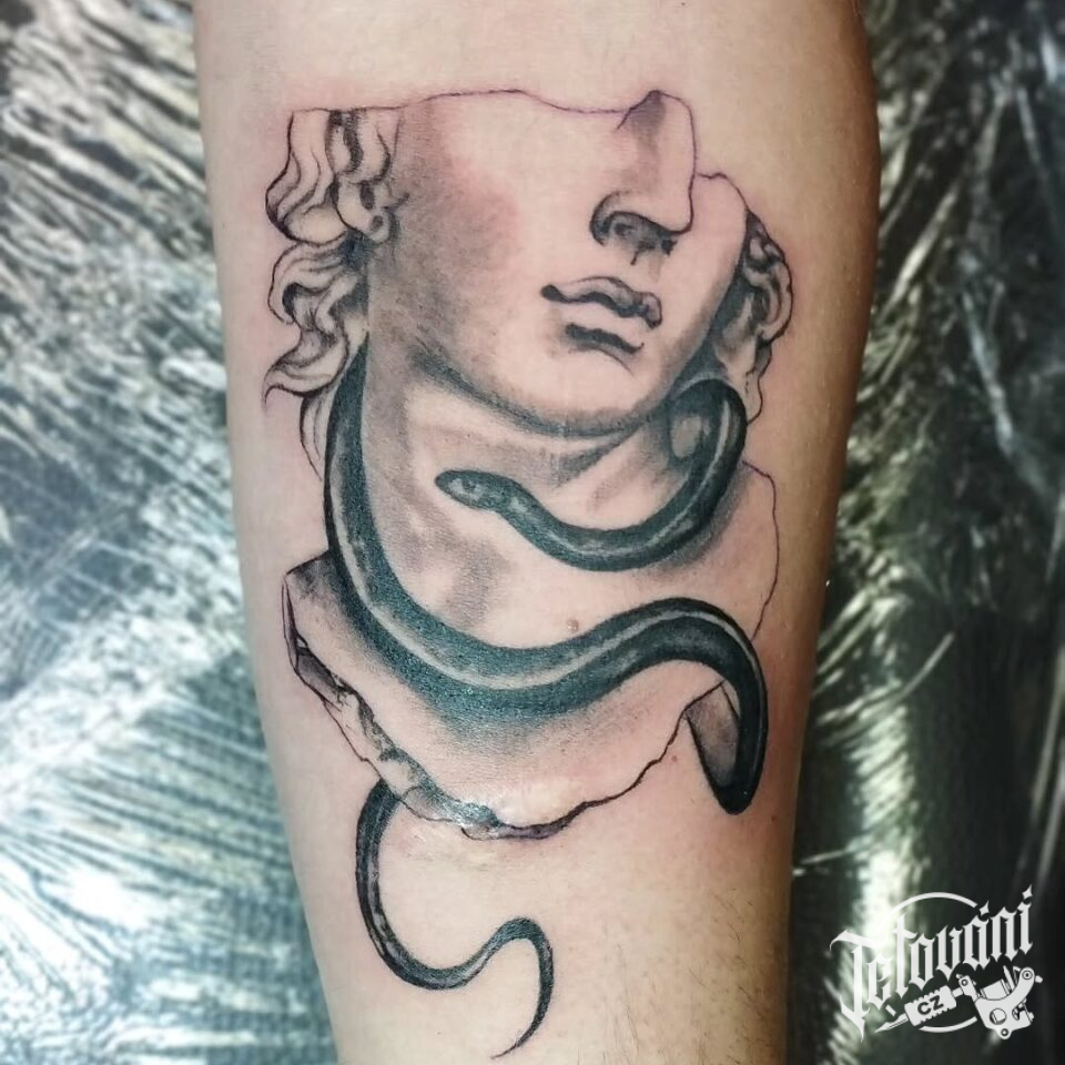 Tetování mytologie, mýtická bytost medúza na předloktí