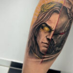Tetování mytologie, nadpřirozená bytost, portrét na lýtko